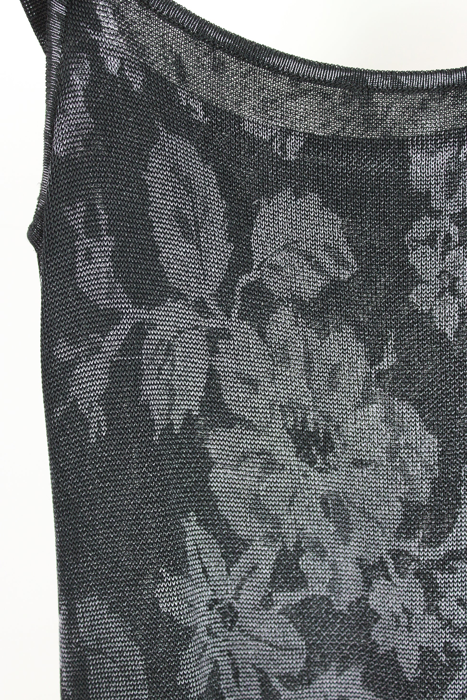 Woman's Long Tank Top Knit Black with Lavender Print